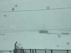 急に雪模様。