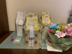 お骨は3匹分みんなそのままの形で新居に移動。