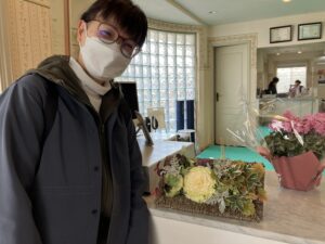 カウンターの上に置いているお正月のステキなお花は