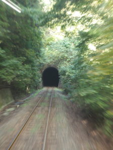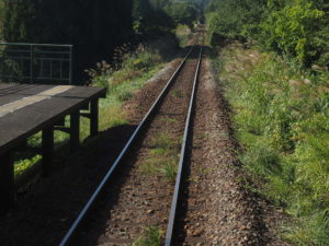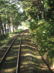 単線の線路のキワキワまで木のトンネルがあるところが多く