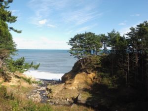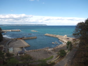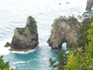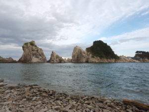 先程、展望台から見えていた岩と白岩の海岸の観光地です。